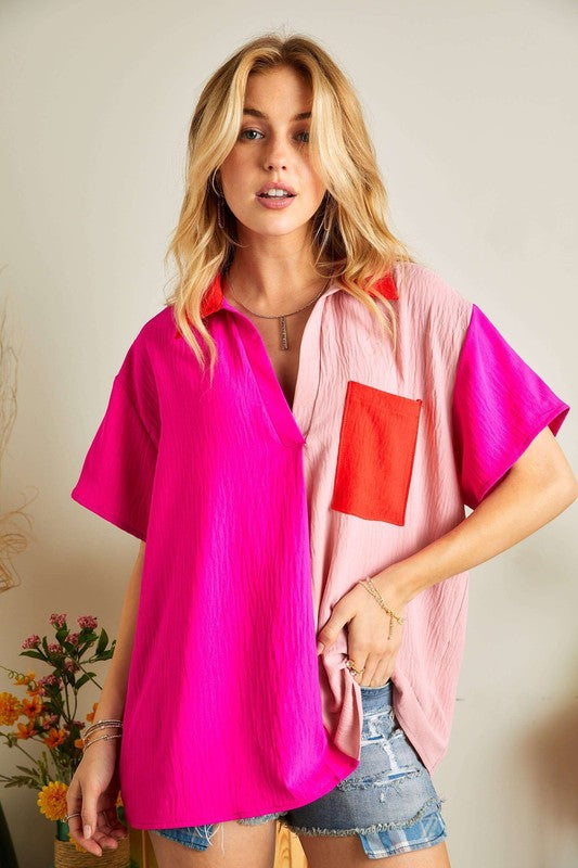Crinkle Color Block Tunic Top