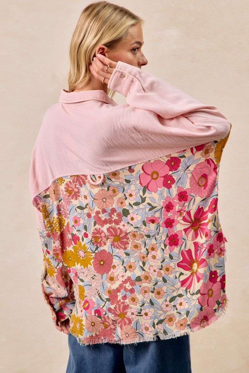 This Pink Floral Top features a washed floral print on a soft woven fabric, designed for comfortable wear. The button-down style adds a classic touch, making it easy to dress up or down. Perfect for adding a subtle floral accent to your everyday wardrobe.
